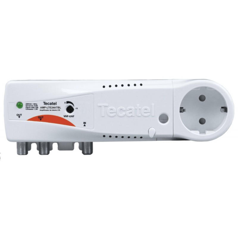 Model AMP-LTE24ATBFrequency range 5 -694 MHzGain 694 MHz 24 dBGain adjustment 15 dBOutput level ( 1 carrier ) 112 dBμVOutput level IMD3=-60dB ( DIN450004B ) 106 dBμVNumber of RF inputs 1 x ’F’Number of RF outputs 2 x ‘F’Noise figure 2 dBReturn loss > 10 dBPower supply 230 VAC / 50 HzPower consumtion 1.3WOperating temperature range – 20 ºC ~ + 60 ºCDimensions / Weight ( packed ) 20,5 x 6,8 x 5,3 cm / 0.390 kg.Protection Index IP 20