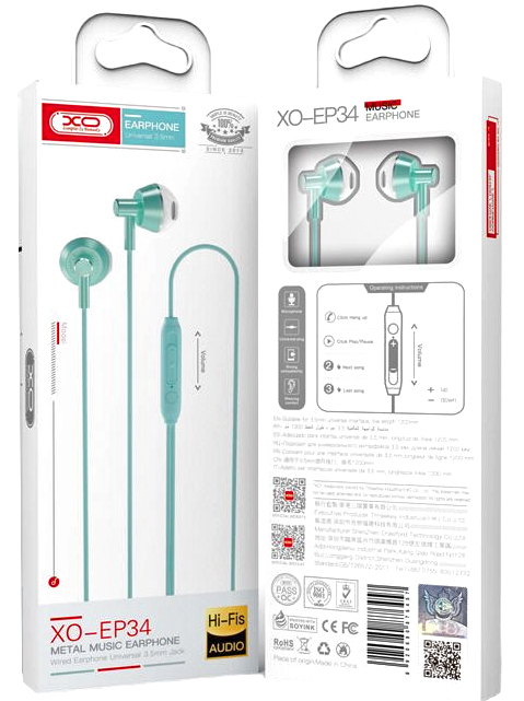 XO EP34 Metal Half In-ear Earphone 1.2M Green
