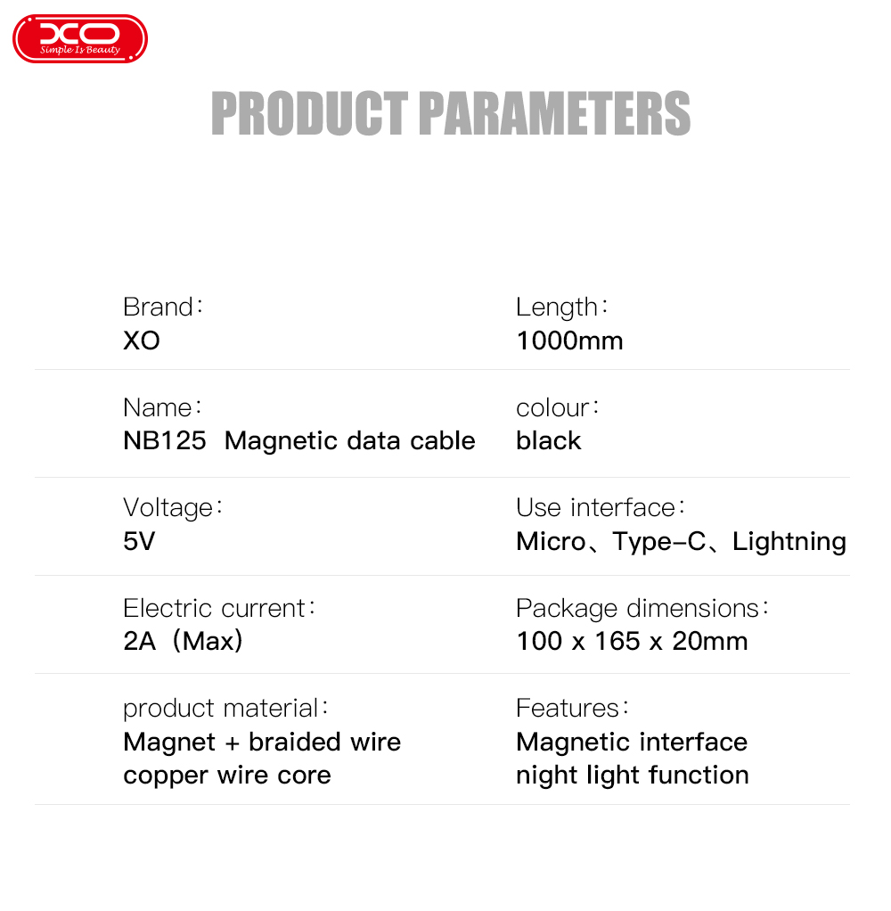 XO NB125 Magnetic USB cable lighting